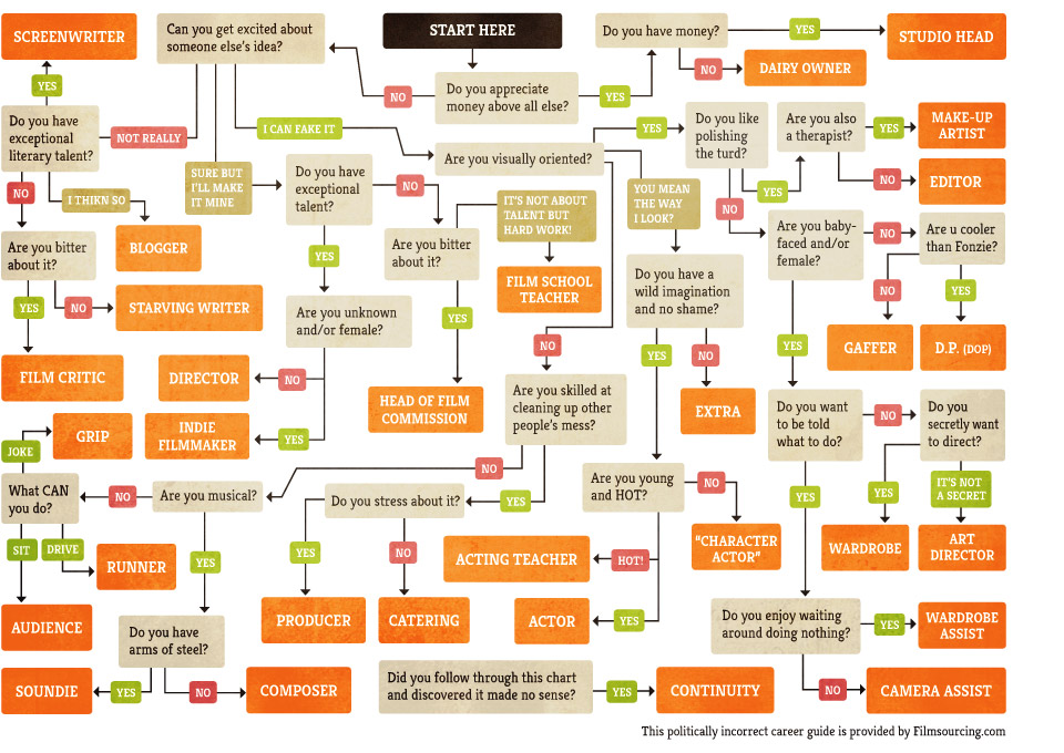 A third January Variety Pack should be coming soon (here’s hoping I’ll still make January), but for now, here’s a nice flowchart for anyone who’s dreaming of a career in the movies.