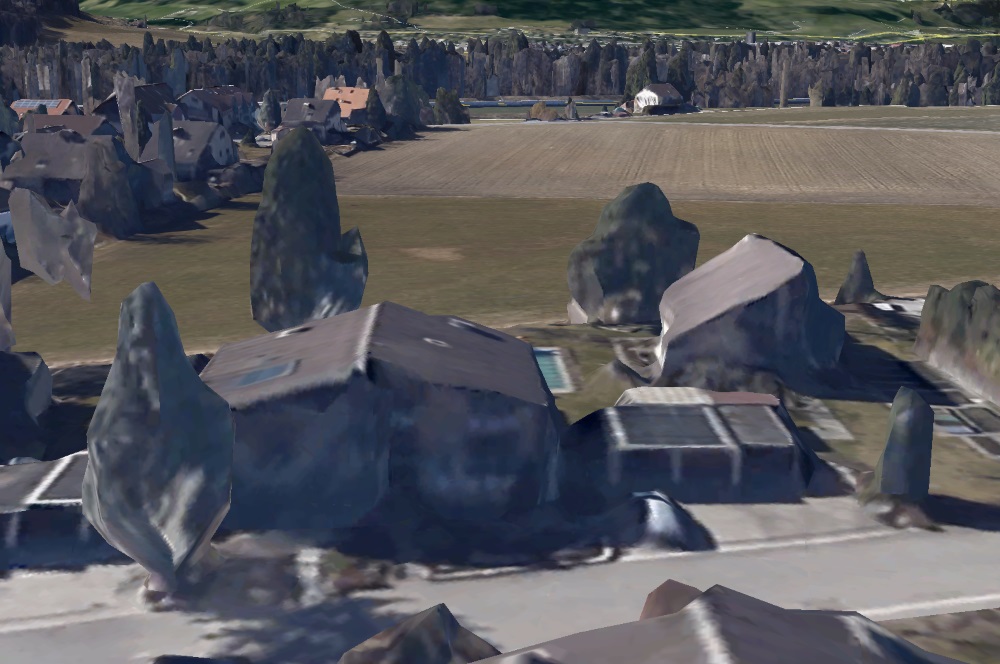That’s when my exploration of a virtual earth became something other, something a bit weirder, than just the kind of technical marvel that we can quickly come to take for granted these days. Gesticulating with my Oculus Touch controllers (again, one price for enjoying cool tech is looking like an absolute idiot while doing it), I zoomed over to the village where I spent most of my childhood, hovering above the familiar road down to the street where I used to live and the house my parents built in 1980. My dad sold it a couple of years ago, and I haven’t lived there in decades, but most of the time when I dream of being somewhere I consider home, the dream home is a variation of that house. Looking at it in Google Earth VR felt almost uncanny: on the one hand, the place is familiar, the layout of the street, the garage and garden and stream, on the other it’s a tiny facsimile compared to which you’re the size of a giant, which feels like you’re as unreal as it is. It’s also a jump back in time: I don’t know how current Google’s image data is, but it’s at least conceivable that the house I was looking at from my bird’s-eye view was for all intents and purposes the one my dad used to live in, that the 3D model and textures were a few years old. (I doubt that Google scans small Swiss villages more often than that.) Perhaps the Google car with its 360° cameras had missed him by just a few minutes.
