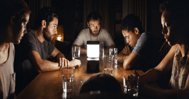 There might be something in the woods. The audience never gets to see it, altough there are a few over-the-shoulder shots into the trees when one of the characters is trying to find their family dog Stanley who has strayed too far from the house. You can press pause all you want, you won’t see the thing that is threatening those people. There is only a clever reverse shot of the actors themselves: they look terrified with what they are seeing, or with what they think they are seeing. Maybe they just feel a heightened fear. And that seems to be the point of every horror flick ever made: it wants you to feel afraid. The It of the title has no physical form or presence except the fear in the heads of the protagonists while they try keeping their wits about them. That fear is crucial; It Comes At Night has realized this, and if applied correctly, it’s more than enough for the movie’s 87 minutes. At one point, Travis draws a picture of what he has seen in the woods, and it looks like two Babadook-like critters are hiding in the trees. But even there: has he seen them, or are they just an expression of his fear?