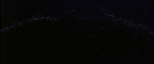 So now then, what is Star? Lurf is an Austrian video artist and has had the shrewd idea to compile as many scenes as possible from feature movies that contain the sky with its stars, be it made up in any way, or real. He has done so chronologically, with the help of many friends, movie geeks and film archives, and the result is this 99-minute compilation of 553 excerpts of night skies from 1905 until the year of release 2017 . Lurf was strict in his search: he cut out any non-astronomical feature, which means you won’t get to see any Millennium Falcon or Cylon or David Bowman. He has, however, left the sound untouched, which leads to the repeated mutilated John Williams score during the credits of Star Wars (all seven of them) without the big names of top billing, so there are split-second time jumps not only in the picture, but also in the sound, and that can get on your nerves. The audience was already small to start with, maybe ten people, and I think that those disjointed bits were the reason for some of the walkouts. A number of scenes were a split-second long, and I remember only one two-minute long sequence of the same galactic cloud while an Asian male voice sang a heartfelt song.