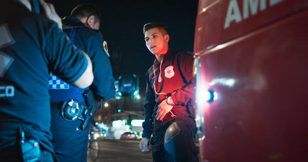 Luke Lorentzen’s film follows four members of the Ochoa family on their mostly nocturnal drives around Mexico City. They are the crew of one of the many private ambulances, hoping for accidents and other emergencies where they can snatch one or two people in order to take them to one of the nearby hospitals. They hope that those people, or family members of theirs, will be able to pay them a fee, because that’s how they make a living. If one of their fares dies or if they or their family cannot afford to pay, the Ochoas don’t get anything either. The system is cutthroat – we see several instances of the Ochoas literally pushing the pedal to the metal in order to outrace other ambulances so they can lay the first claim to a passenger -, it is inefficient and should send even devout proponents of free markets reeling. The system, and the situation it creates, seems to be right out of a reactionary dystopia.