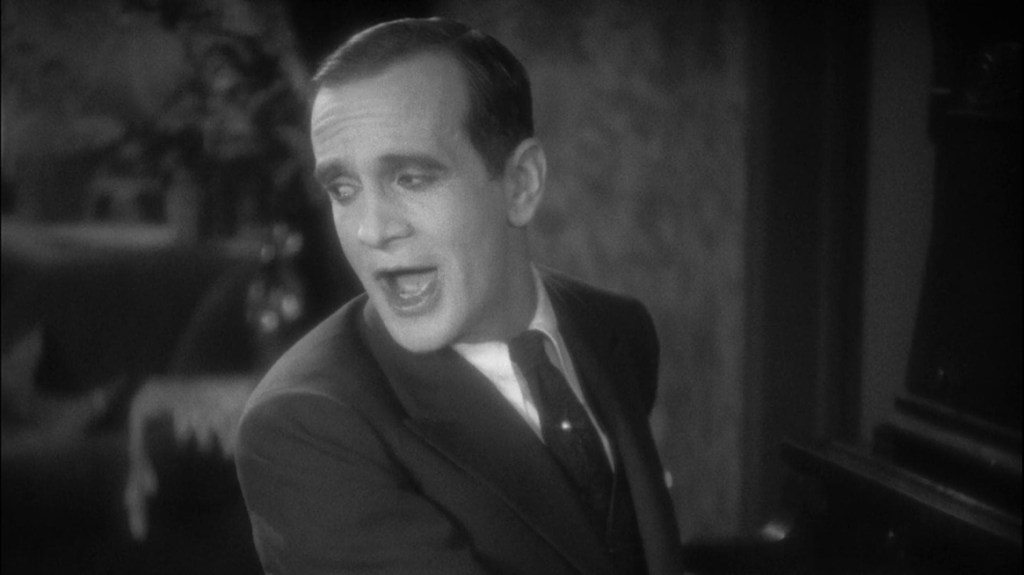 Poor Jakie (Robert Gordon as a young Jakie, and Al Jolson for the rest of the film) wants to sing Ragtime. But his father disapproves and wants him to be a traditional Cantor. Despite mother’s pleadings, a whipping prompts Jakie to run away from home. “Years later, and three thousand miles from home”, reads the title card, and we finally get to hear Al Jolson sing, followed by the famous lines: “Wait a minute! You ain’t heard nothing yet!”.