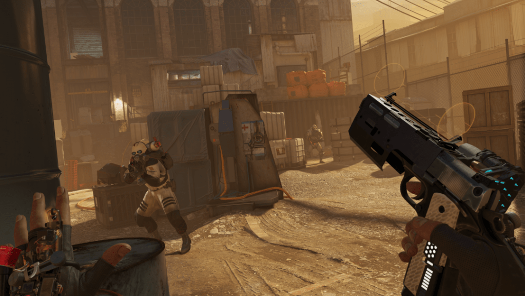 So on to the next slice of VR goodness: Half-Life: Alyx, the continuation of a story that was left in limbo thirteen years ago. No slime-dripping xenomorphs in this one, just your bog-standard multidimensional invasion force – but again, the world of the game is eerily familiar: curfews are in place, people stay inside, because the outside is dangerous. Combine soldiers won’t just give you a stern talking to and a fine if they see you gallivanting around the deserted streets of City 17, so most of the time you’re decidedly safer if you just stay out of sight.