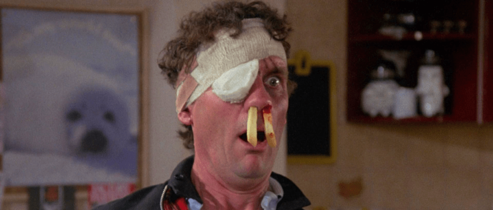 I’d say that it comes down to what comedy really is about, at the end of the day: observation and insight. Cleese isn’t happy to just populate this movie with archetypes; he subverts and layers, and in that subversion, a lot of Wanda’s real comedy emerges. It’s also about a willingness to love these characters enough that you can be mean about them too. Witness poor Ken, played by Palin: the shy, quiet, animal lover with a devastating stutter who has no qualms trying to off an old woman, yet ends up accidentally killing each of her three Yorkshire terriers in three separate assassination attempts. And every time it happens, you can see that he is devastated. The first time, it’s a mild shock. By the third time, you can only laugh at the tragic irony of this, and Cleese layers on the joke by having the old woman finally kick it too, dying of shock from the inexplicable deaths of her beloved animals. In the end, it is Ken, poor, peaceful, tortured Ken who commits the movie’s final act of violence, his blood finally come to a boil and unleashing what was within.