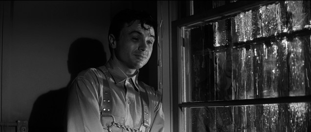 Which makes it all the more striking when we get to the film’s (surprisingly late) depiction of the murders, and the stylish, stylised aesthetic of the preceding parts is replaced by something much starker. Jones’ score goes silent, the camera work and editing become much more low-key and intimate, and stylistic choices are dictated by the situation: most of the Clutter house is dark, so all we see is the glimpses illuminated by the flashlights the killers-to-be are carrying. The change in style is oppressive, but it is also strangely flat at first (one of the critics interviewed on the extras of the Criterion edition says that there is something almost tedious to it). The film isn’t trying to excite us the way movies generally do, it isn’t trying to get the adrenaline going by the conventional means of thrillers. The film’s score returns later during the extended flashback, but it is quiet, almost subliminal. Brooks and his collaborators forgo more sensationalist stylistic flourishes, and the film very much benefits from this.