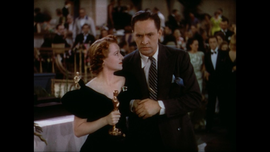 Though the film is a unique one, it is of course a remake. The second half, especially, is a blow-by-blow retelling of the 1937 A Star is Born in which we first meet Esther Blodgett and Norman Maine. Esther Blodgett, stage name Vicky Lester (Janet Gaynor), is the girl from the sticks who dreams of making it big in Hollywood. She gets to Los Angeles only to find out she has more chance of winning the lottery than to get her shot at fame. Enter the famous actor Norman Maine (Fredrick March), who gives her the first big break she needs to propel her to stardom. They fall in love and get married. While her star rises, his rapidly fades. He is a severe alcoholic and it has interfered with his work to such an extent that even his producer has to reluctantly give up on him. He tries to get sober, but his self-respect is gone, and despite his devotion to his wife he resents the disparity in their success, and falls off the wagon. When Esther gets awarded her Oscar, and starts to make a touching speech, Norman breaks in fall-down drunk, and starts ranting about how he deserves a prize for the “worst performance of the year”. This is the speech in which James Mason’s Maine drunkenly laments “I need a job!” in the later iteration, a version of which has remained in the script up until the fifth rendition in 2018. This early version of A Star Is Born with its dreams of escaping Depression-era America in order to become a big star, won an Oscar for best original story.