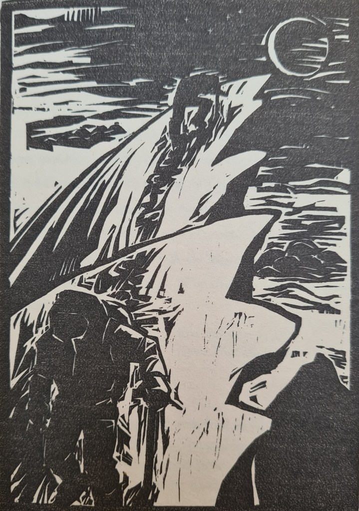 *The extraordinary woodblock prints are copyright by Randy Rackliff, alpine climber and artist, reproduced here from my own battered old paperback from 1998 (Pan books).