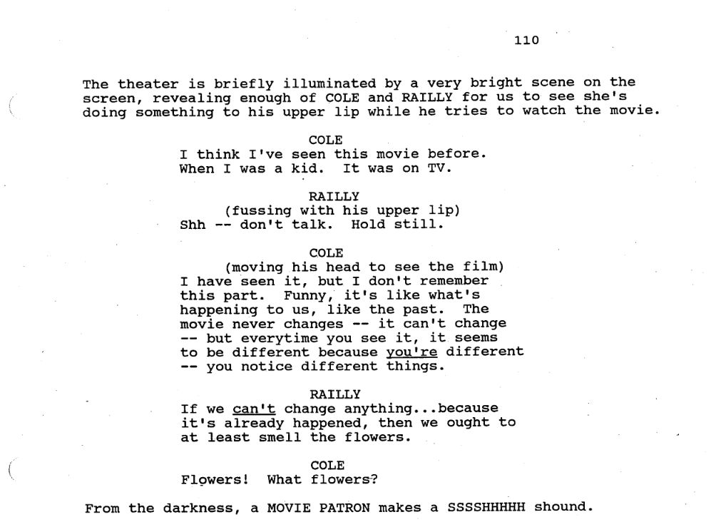 Note: The excerpt of the 12 Monkeys script is taken from https://www.scriptslug.com/script/twelve-monkeys-1995.