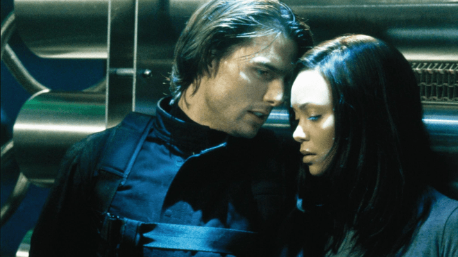 The ending aside, it’s still a pretty good film. Audiences at the time thought so, so four years later Mission: Impossible 2 turned up. If the first one had been a little light Hitchcock, this turned out to be Don Simpson coke-fuelled High Concept Action turned up to 11. Unfunny, misogynistic, nonsensical – it’s a mess of a film, and even the John Woo-directed action sequences have aged appallingly. Tom Cruise, having given up on trying to be Cary Grant, now gurns his way through the film like a smug Fabio.