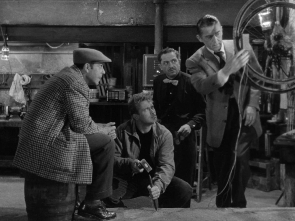 In that respect, the heist is both the main reason Rififi is remembered and something of a detriment: it is the undeniable highlight of the film, and arguably one of the all-time highlights of the genre, but what came before and what follows it doesn’t come close to the sublime purity of that half-hour. That’s partly the point: for these men, executing the perfect heist is something akin to nirvana, and everything else is messy, imperfect, corrupted. Perhaps it doesn’t matter in the end that they end up dead and the money is lost, because they did reach that kind of peak – but the sweaty, deadly fumbling of the film’s final half-hour, which is such a stark contrast to the heist, suggests otherwise. They’re like junkies: they need the fix of the caper, but that fix cannot be had without everything that goes into achieving it and that follows it, no matter how base and miserable.