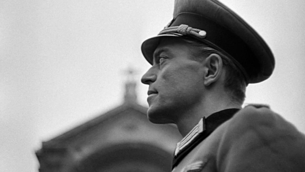 As von Ebrennac continues his ongoing campaign of cultural courtship – which over time is hinted at being an attempt to court the niece herself, not just as the representative of a female-coded France – he increasingly reveals himself to be a man who is at denial about who he his and what he represents. He clearly believes everything he says: France needs to be wooed, if necessary with a touch of violence, and Germany needs to be tamed. War is the horrible but necessary means of achieving this. He is not unmoved by the cruelty of war and of the occupation, but for him the solution to the current situation is one in which France yields herself to Germany and in doing so both countries are saved. And it is increasingly his self-image as an aesthete, a man of culture, and his framing of Germany’s war on Europe as a necessity for the betterment of all, that is revealed to be as offensive as out-and-out fascism. It could be seen as akin to gaslighting – if von Ebrennac wasn’t himself entirely convinced of everything he says. He is a believer, and as a result he is blind to the reality of what he represents and what he defends to his unwilling hosts.