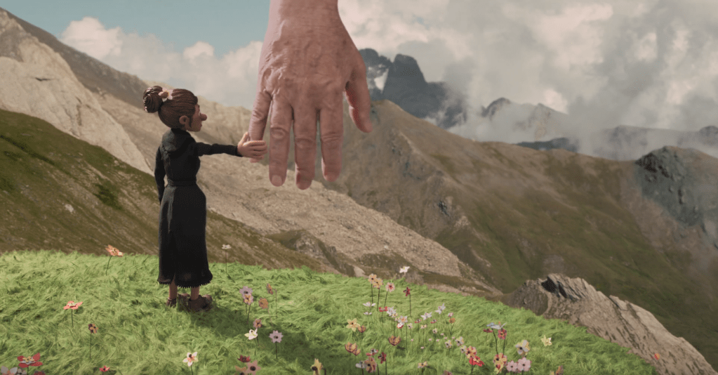 A couple of months ago, we went to see the European co-production No Dogs or Italians Allowed by the director Alain Ughetto. In it, Ughetto tells the story of his grandparents Luigi and Cesira who leave their home in Northern Italy to make a better life in France. No Dogs or Italians Allowed breaks the fourth wall frequently, never hiding the making of the story. We first see Ughetto collecting material to use in the film, and then we see these materials pop up in Luigi and Cesira’s story. More than that, Ughetto’s hand almost becomes its own character, acting on the world of the story he depicts. And, late in the film, there is a scene where the director talks to the puppet representing his grandmother – or, more accurately, we watch Alain talk to Cesira. She extends her hand, and he takes it. The animated figure and the human director, inhabiting two different worlds in more than one sense, touch and connect. The technique Ughetto uses to tell a simple if poignant story of leaving one’s home and emigrating to a new, not entirely welcoming country takes on a magical quality: as the artist making this film and having created a version of his grandparents in the telling takes the hand of the puppet, the grandson also takes the hand of the grandmother that gave birth to his father. There’s a gentle yet mindbending poetry to the way creator and creation, ancestor and progeny, loop and blend into one another until it no longer matters who made whom and who is writing whose story at this moment.