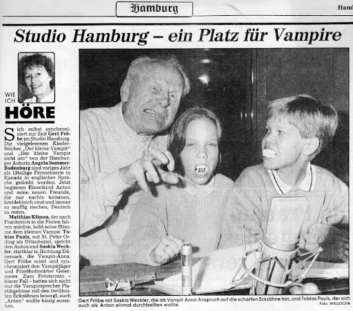 However, The Little Vampire was also truly scary to me, not at all because of the vampires themselves, whose bloodlust is considerably tamed down here and their characteristics rather come across as charming satire of all the known vampire clichés. What was really frightening, instead, was their foe, the man who roamed the cemetery at night, chewing garlic, singing threatening songs and trying to find and stake out each vampire: Detective Gerrmeyer (or Johann Geiermeier in German), played by none other than German star Gert Fröbe!