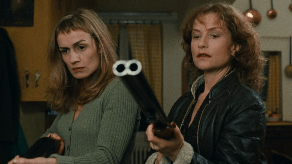 But this makes the film sound grimmer than it is. It’s definitely not light fare, but there is an impish fun in watching especially Isabelle Huppert in an unusual role. Huppert rarely plays characters that submit to the dictates of society, she usually deals in irony and subversion, but coming at it from the end of her career, we more often see her living in the mansions rather than invading them with a loaded shotgun. In La Cérémonie, la Huppert is a rude, selfish chaos goblin that does not care what others think of her and her actions – whether those actions are opening other people’s mail, letting her troublesome daughter die (or killing her in a more active way?) – or taking out her used chewing gum, sticking it under a desk, and then popping it in her mouth and continuing to chew! She is a Francophone variation on characters like Barbara Loden’s Wanda, crossed with the sociopathy of Badlands‘ Kit or Peter and Paul from Michael Haneke’s Funny Games. She has found the fun in giving the finger to social conventions – and after she’s given them the finger, she follows that up with two blasts from a shotgun.
