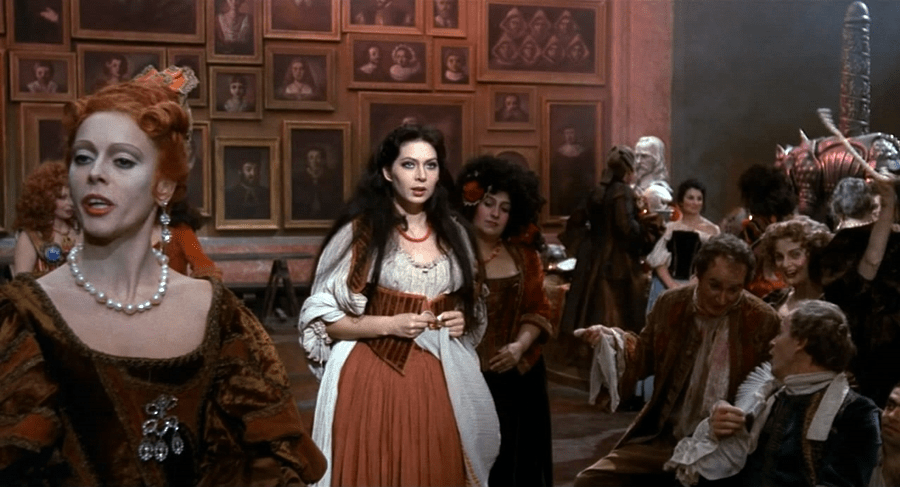 Fellini had a well-documented dislike for the character of Casanova, and his film certainly doesn’t hold back. His Casanova is grotesque and self-serving, he is a whining, pathetic figure when he’s not bedding a woman, and he’s self-serving to the point of being oblivious of his partners when he is engaged in sexual activity. The character is constantly desperate to prove himself, and the film is eager not to let him: it may depict his stamina and dexterity between (and outside) the sheets, but his love-making is usually compulsive and even mechanical. And yet, as played by Donald Sutherland (a choice that may seem odd, but that proves to be one of the film’s greatest strengths), Casanova also develops genuine pathos, especially in the latter parts of the film. He is never less than spiritually bankrupt, but by the end Fellini shows him as an old, sad man, and especially the final scenes are not without an element of understanding and even affection. The director may have disliked the character, but at times his Casanova recalls an older, less charming version of La Dolce Vita‘s Marcello Rubini or 8½‘s Guido Anselmi, two characters that are stand-ins for the director himself. He is someone whose ego has steamrolled any moral consideration for others, and he is slowly starting to realise how much this has isolated him. But whether this parallel is intended or not, Fellini definitely doesn’t go easy on Casanova: the film is frank about his deficiencies as a lover and a human being, and although there are enough sex scenes that show the recipients of Casanova’s sexual prowess to be willing partners, even ones that seem to enjoy the sex more than Casanova does, there are other scenes that show him as a serial abuser and rapist with no interest in consent whatsoever. (The sexual contest against the carriage driver has the woman he chooses as the recipient of his sexual skills voice her unwillingness, but neither Casanova nor his audience care to hear her pleas, as they are irrelevant to the audience’s enjoyment or Casanova’s need to prove himself.)