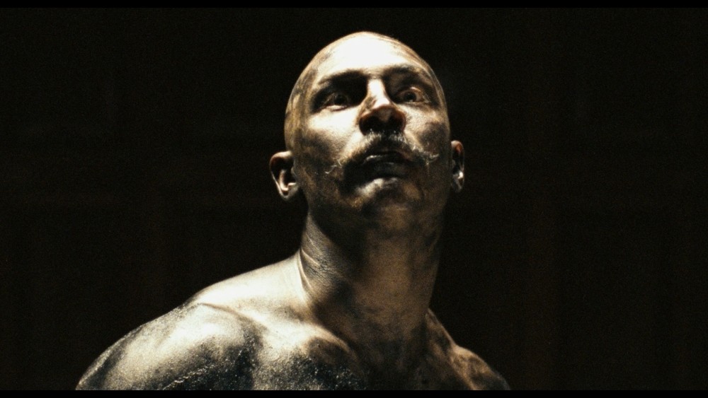 While the film is distinctly uneven and sometimes unintentionally uncomfortable for quite the wrong reasons, it is a lot of fun to see Hardy – pumped up to a bear of a man – being put into absurd situations. In some cases, for example when he is reunited with his parents in an oddly stilted scene, it doesn’t quite land as either comedy or drama. In others it works surprisingly well and is often howlingly funny. The scenes in the closed psychiatric hospital, though, feel a little like a film student has become rather too enamoured with One Flew Over the Cuckoo’s Nest, and the final hostage scene is perhaps a little smug in how knowingly disturbing it is. But again, Hardy finds something interesting within the exhibition Bronson is about to make of himself. “He’s done!” Bronson howls, for a split second seeming to refer to the man’s palpable distress. But then he repeats: “He is done,” and this time there can be no doubt he views the poor hostage as a mere object he has just ’embellished’. On the whole, the film, while dark, is both humorous and at times incisive. This thug with the operatic moustache and the sometime childlike expression, insists on intentionally disregarding his own evident mental illnesses and vulnerabilities again and again, because he simply prefers to express himself through extreme violence, as an act of self-creation, or simply because little seems to repulse him more than overt vulnerability. The imagery too makes the film worth the watch, as does the juxtaposition of imagery and music. The point being that, as Bronson insists in the film, “They don’t give you a star on the walk of fame for being ‘not bad’,” meaning that, according to him, you have to go to extremes to gain any visibility whatsoever. To go bad bad, in fact. And we are left to wonder what exactly lives there, behind the mask and the acting-out. Whatever there is, if anything, remains hidden behind what we can see.