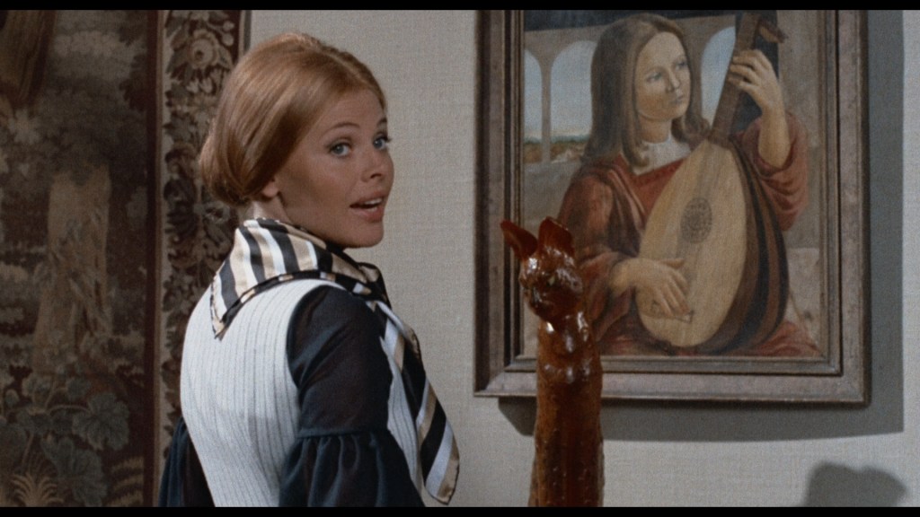 Ekland had arguably quite an interesting career, trying to both capitalise on and undermine her ‘Swedish bombshell’ image and distance herself from the yellow page presence she had endured at Sellers’ side. She starred as a burlesque dancer in William Friedkin’s The Night They Raided Minsky’s (1968), as well as in a series of Italian genre flicks (notably as Antigone in The Year of the Cannibals in 1970).