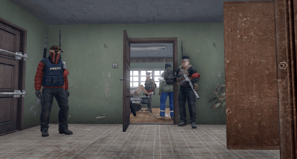 Knit’s Island (2023) is a documentary that stands out first and foremost because it was filmed (almost) entirely in a game, namely the survival game DayZ. Let’s make that more accurate, and more of a mouthful: as Wikipedia puts it, DayZ is a “multiplayer online survival video game”. It puts you in a fictional post-Soviet country, the Republic of Chernarus, after the kind of outbreak has occurred that always seems to occur in such games, where you try to scavenge goods and weapons in order to survive against the ravenous, aggressive infected. But you don’t just face up against zombie-likes: you’re in this world with other players, up to 127 of them – and they too are after those same goods and weapons.