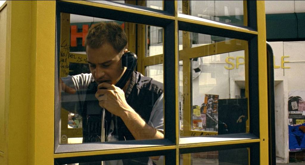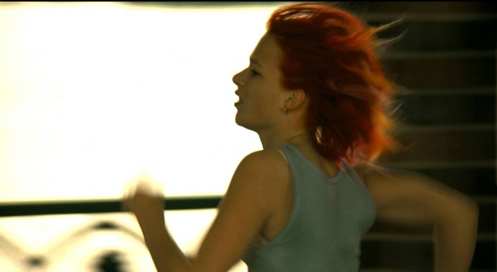 Lola tells him to stay there. To not move. To not do anything stupid. To not do anything at all. She’s on her way. And so Lola runs out of the apartment, through the streets of Berlin, towards the bank where her father works. This in order to convince him to give her the cash, so she can save Manni’s life.