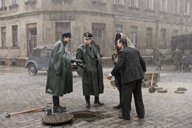 The story of a sewer worker protecting a dozen Polish Jews fleeing the massacre of their families and friends in Lvov and looking after them in the sewer system, first for money but later because he comes to see it as the right thing to do, is interesting in itself, but apart from the details it’s not altogether new. What makes the film effective even when it follows fairly well-trodden ground is what Holland gets out of her actors and how she portrays all of them as essentially human – though not in a sentimental way. The characters she shows us are flawed, petty, jealous, shallow, selfish, craven, and this is as true for the Jewish refugees in the sewers as for Leopold Socha, the Polish sewer worker. There’s often a tendency, not only in films, to idealise the persecuted and the victims, and while the impulse is understandable, such idealisation can be dehumanising. Holland never loses sight of the humanity of all her characters, the good and the bad, and the film benefits greatly from it.