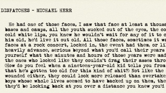 Michael Herr’s Dispatches is a slim book, but it’s so densely written that I couldn’t get through it in one day. It’s his own personal diary from the Vietnam war, condensed into such sparse prose that you will have to set it down eventually. Herr throws you into the the mess of war and explains only what is crucial for the rest of the text so that the reader is set to feel very much like a newly drafted soldier joining the conflict – you have basic training, but no clue about the area they drop you in. The reason for that immediacy might be that Herr is not really a novelist, but a journalist. He volunteered to go to Vietnam, joined the reserve there in 1967, returned to the US, had a nervous breakdown, couldn’t write anything for five years and finally published this book in 1977.