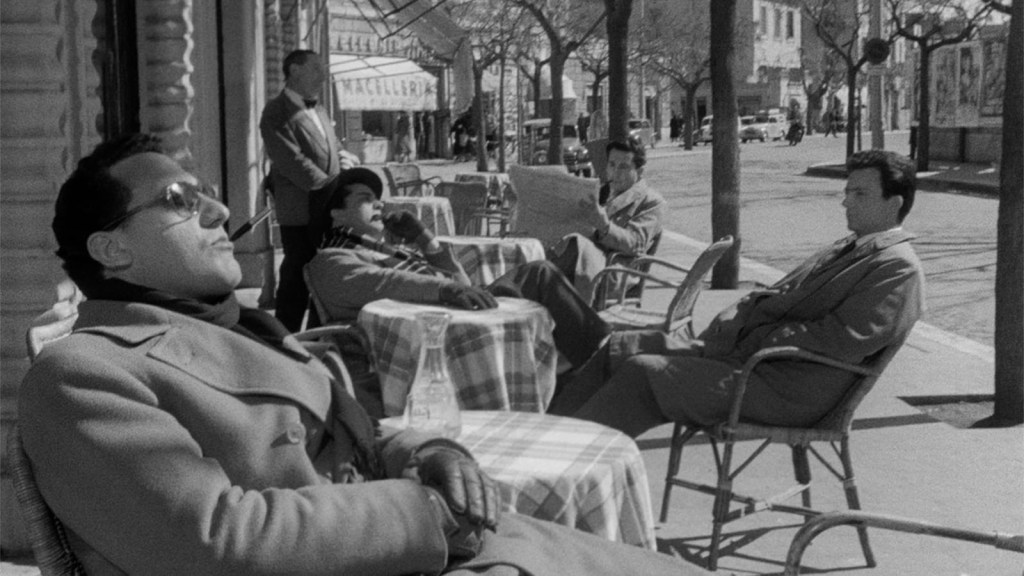 It was bound to happen sooner or later. I was somewhat lukewarm on Variety Lights and The White Sheik; both films had things to like about them, but neither made me look forward to watching the remaining dozen films in Criterion’s collection dedicated to Federico Fellini. The third film in the collection, I Vitelloni, didn’t immediately seem like a big step up. As in the previous two films, we get men behaving badly (towards women, but not only), feeling entitled to all the best life has to offer and feeling sorry for themselves when they don’t get it. They’re more grating because of how the film plays a lilting Nino Rota score that suggests we’re to consider all of this as a lark: boys being boys, that sort of thing. But then, around the halfway point of I Vitelloni, something changes: a note of desolate sadness creeps in, a despair underlying the laddish performativity of it all, slowly but surely becoming the film’s dominant tone.