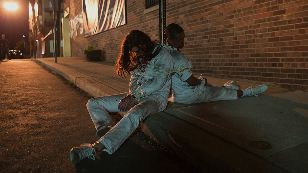 Kevin and Matt return to a Mapleton in turmoil. People want to hurt the GR and to burn those grotesque puppets. Megan is badly beaten up and tied to a lamppost; people with guns run through the streets, mad with anger and grief. The GR headquarters are aflame, and the fire brigade and the police are not in a hurry to help them. Kevin looks on as a couple throw their son’s eerie avatar into the fire. Just imagine: you are angry enough to throw that puppet in the flames, but you still watch your beloved one’s likeness melt.
